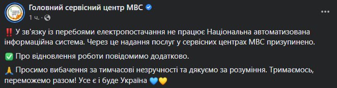 Из-за перебоев с электричеством в Украине 12 октября не работает Национальная автоматизированная информационная система.