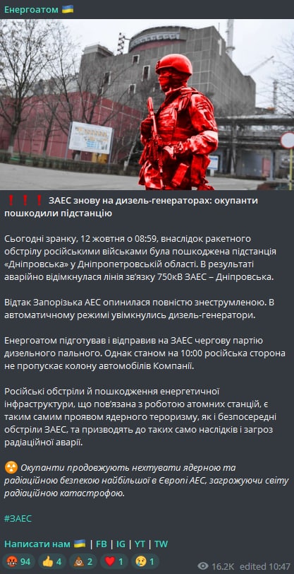 Напомним, вчера украинская разведка сообщала, что на ЗАЭС отключили все энергоблоки, а сотрудников заставляют подписывать контракты с Росатомом.