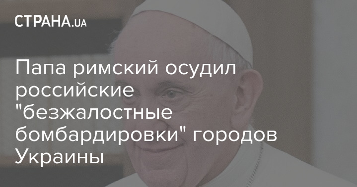 Папа Римский Франциск осудил российские "безжалостные бомбардировки" украинских городов, которые военные РФ совершали особенно массированно последние два дня, заявив, что эти атаки вызвали "ураган насилия" против жителей.