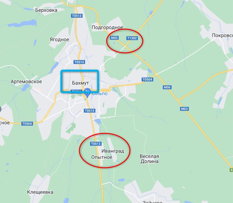 Опытное и Иванград - это последние населенные пункты перед окраинами самого Бахмута с юга. Российские телеграм-каналы пишут уже о боях в районе Дамбы в южной части Бахмута.