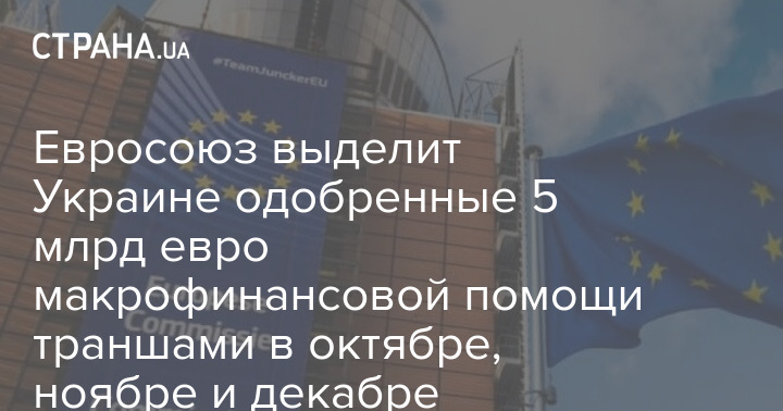 Евросоюз выделит Украине одобренные 5 млрд евро макрофинансовой помощи траншами в октябре, ноябре и декабре. Об этом сообщает Bloomberg со ссылкой на источники, знакомые с ситуацией.