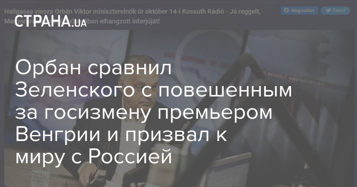 Орбан сравнил Зеленского с повешенным за госизмену премьером Венгрии и призвал к миру с Россией