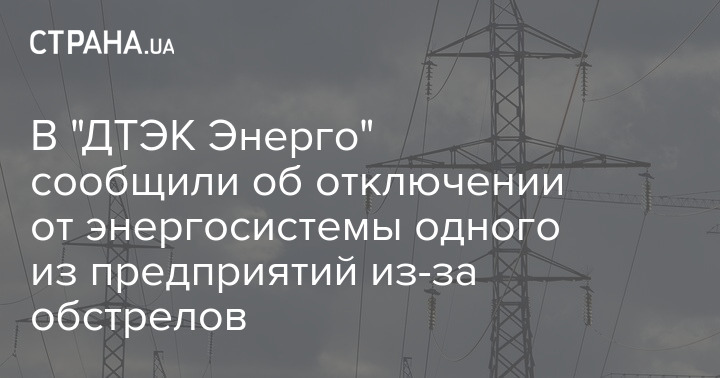 В ДТЭК Энерго сообщили об отключении от энергосистемы одного из предприятий из-за обстрелов