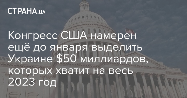 Конгресс США намерен ещё до января выделить Украине $50 миллиардов, которых хватит на весь 2023 год