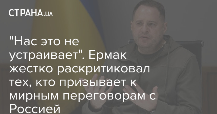 Глава Офиса президента Андрей Ермак раскритиковал тех, кто выступает с миротворческой позицией по российско-украинской войне и считает, что ее нужно заканчивать дипломатическим путем.