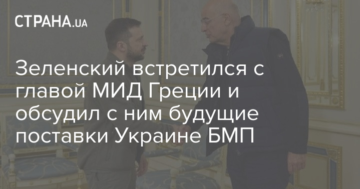 Зеленский встретился с главой МИД Греции и обсудил с ним будущие поставки Украине БМП