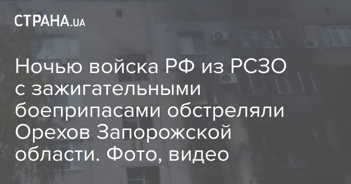 Сегодня ночью сильному обстрелу подвергся Орехов Запорожской области. Туда ударили реактивные системы залпового огня с зажигательными боеприпасами.