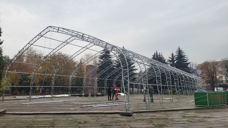 В Ровно на площади Победы монтируют палатку для обогрева площадью более 500 квадратных метров.