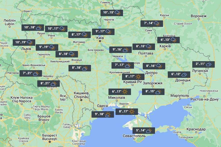В ближайшие выходные, 29 и 30 октября, в Украине ожидается потепление. Так, в субботу на западе страны температура поднимется до +17°...+21°. Из-за этого будут наблюдаться температурные контрасты, так как на востоке сохранится прохладная погода, до +11°...+13°.