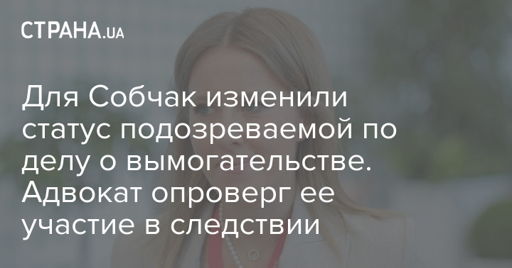 Для Собчак изменили статус подозреваемой по делу о вымогательстве. Адвокат опроверг ее участие в следствии