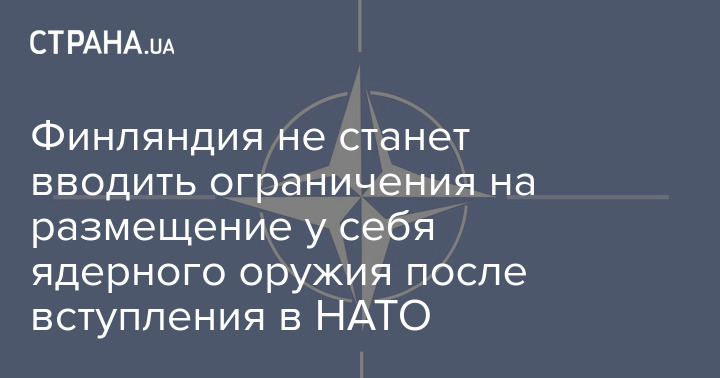 После вступления в НАТО Финляндия не будет вводить ограничений на размещение ядерного оружия на своей территории, то есть у самых границ России.