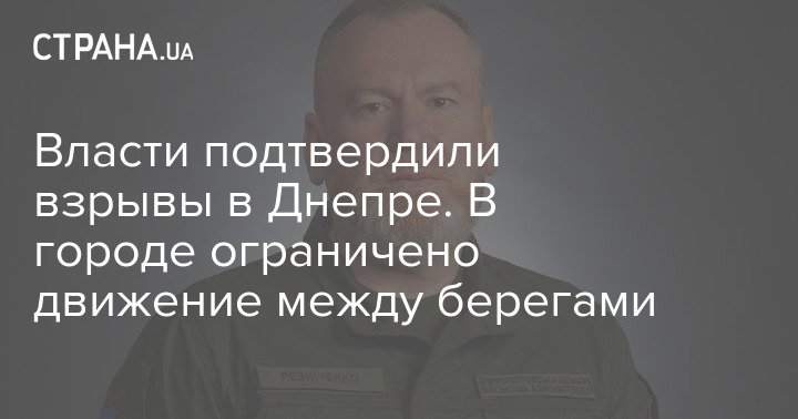 Власти подтвердили взрывы в Днепре. В городе ограничено движение между берегами