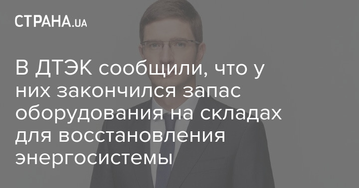 В ДТЭК сообщили, что у них закончился запас оборудования на складах для восстановления энергосистемы