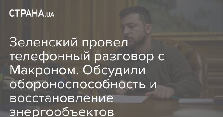 Зеленский провел телефонный разговор с Макроном. Обсудили обороноспособность и восстановление энергообъектов