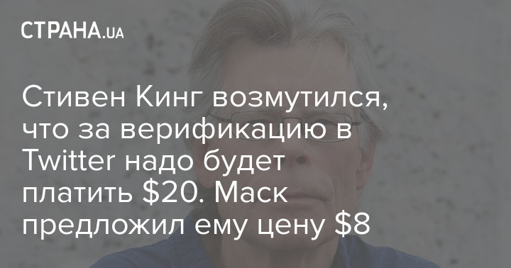 Стивен Кинг возмутился, что за верификацию в Twitter надо будет платить $20. Маск предложил ему цену $8