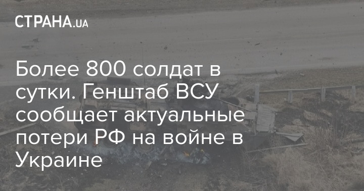 Генштаб ВСУ озвучил актуальные данные по потерям армии РФ на войне в Украине. За минувшие сутки РФ потеряла более 800 военных убитыми, заявляет украинское командование.