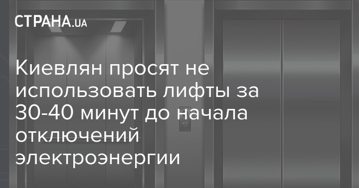 В пресс-службе Киевской государственной городской администрации сообщили о том, что киевлян призывают не использовать лифты за 30-40 минут до начала стабилизационных отключений