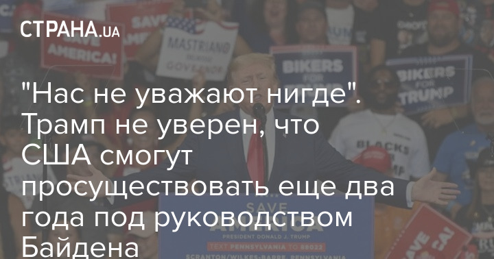 Бывший президент США Дональд Трамп усомнился в том, что Америка сможет просуществовать еще два года, намекая на несостоятельность администрации президента-демократа Джо Байдена.