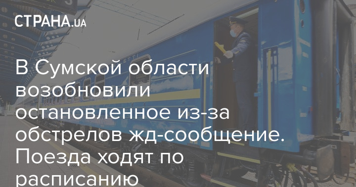 Движение поездов в Сумской области, которое было остановлено из-за обстрелов, возобновилось.