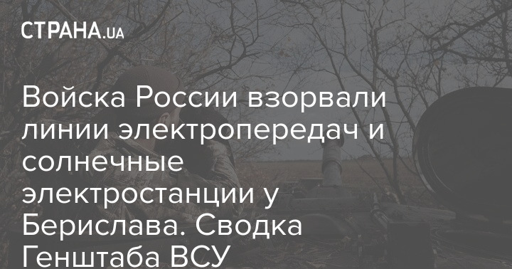2. В районе Берислава Херсонской области россияне взорвали линии электропередач и оборудование солнечной электростанции. Оккупанты отобрали у Херсонского областного музея Шовкуненко все художественные ценности, мебель и технику.