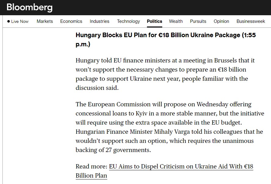 Также мы писали, что министр иностранных дел Венгрии Петер Сийярто заявлял, что Венгрия не хочет давать деньги на кредит Евросоюза для Украины. По его словам, Будапешт уже предоставил значительную финансовую помощь Украине и готов продолжать это делать и в дальнейшем. Но долгосрочный план совместных заимствований Венгрия поддерживать не желает, потому что он показал свою неэффективность еще во время пандемии ковид.