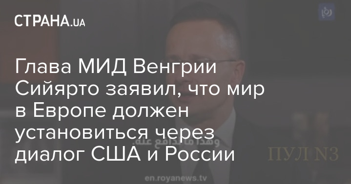 Глава МИД Венгрии Сийярто заявил, что мир в Европе должен установиться через диалог США и России