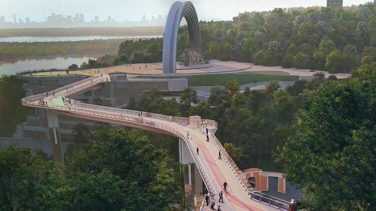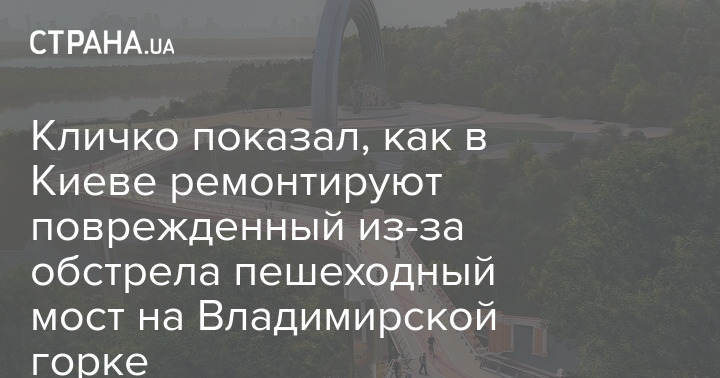 Кличко показал, как в Киеве ремонтируют поврежденный из-за обстрела пешеходный мост на Владимирской горке