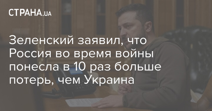 Президент Украины Владимир Зеленский считает, что Россия во время войны понесла в 10 раз больше потерь, чем Украина.