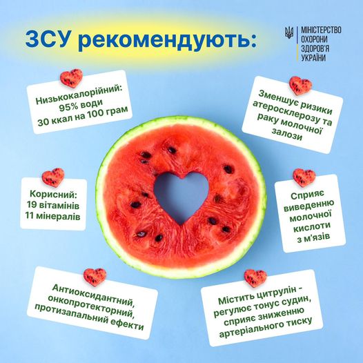 В связи с деоккупацией правобережной Херсонщины Минздрав напоминает о пользе арбузов, которыми славится освобожденный южный край.