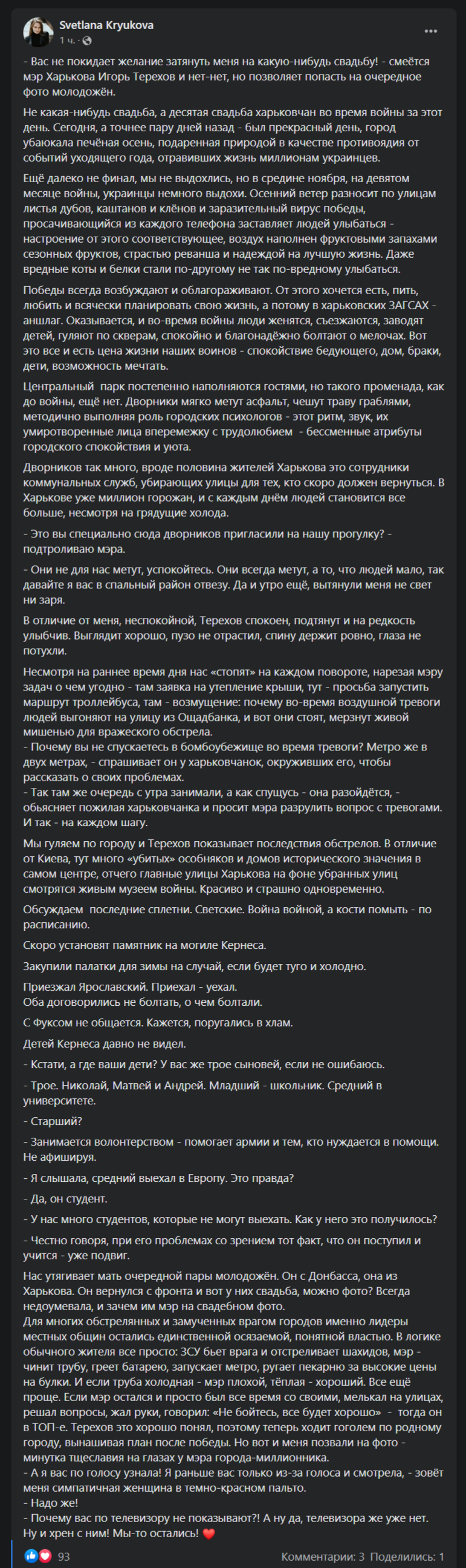 По его словам, Николай занимается волонтерством.
