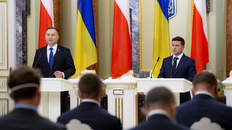 Президент Польши Анджей Дуда разговаривает с президентом Украины Владимиром Зеленским.