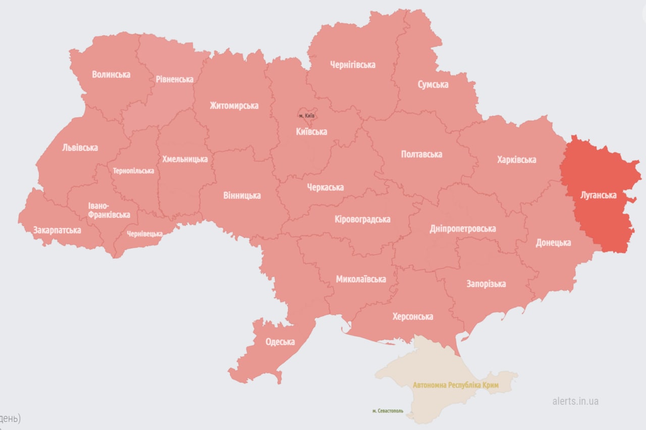 09.50 Воздушная тревога в большей части регионов Украины.