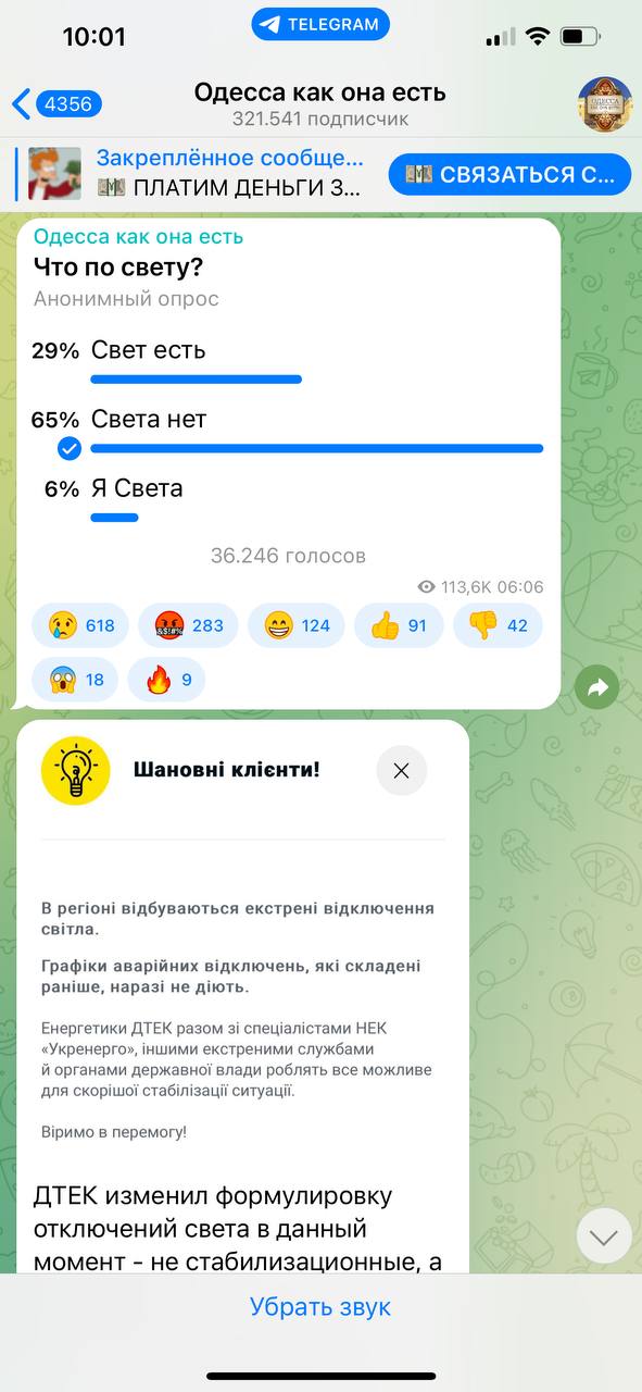 На скрине - опрос в одном из местных телеграмм-каналов сегодня рано утром на тему «есть ли у вас свет». 65% ответили, что света нет.