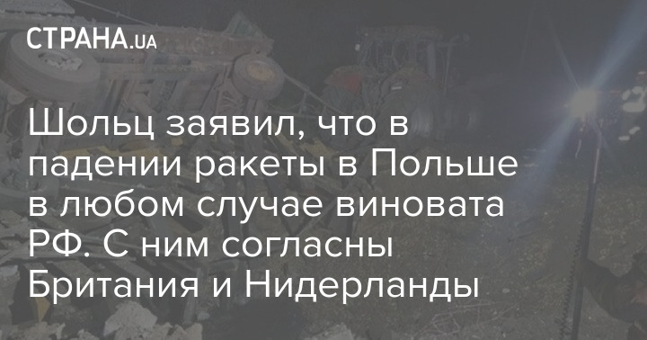 Германии неважно чья ракета упала в Польше, в любом случае виновата Россия, потому что напала на Украину. Об этом заявил канцлер ФРГ Олаф Шольц.
