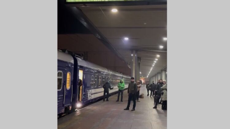 В Сети появилось видео первого поезда из Киева в Херсон, отправившегося сегодня вечером, 18 ноября.