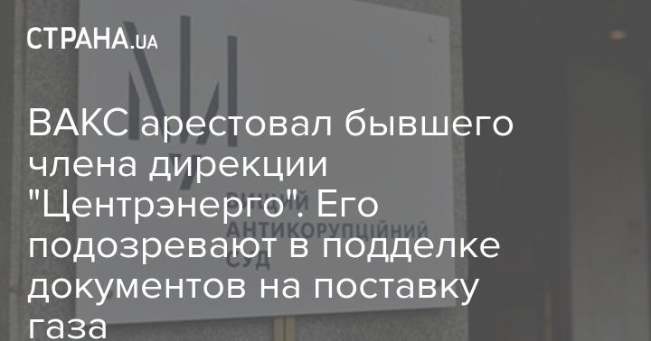 Высший антикоррупционный суд (ВАКС) арестовал бывшего члена дирекции ПАО "Центрэнерго", подозреваемого в злоупотреблении служебным положением и подделке официальных документов.