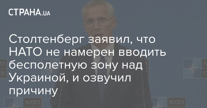Столтенберг заявил, что НАТО не намерен вводить бесполетную зону над Украиной, и озвучил причину
