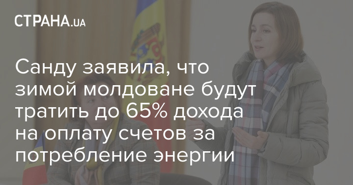 По словам Санду, грядущей зимой жители Молдовы будут тратить до 65% своих доходов на оплату счетов за потребление энергии.