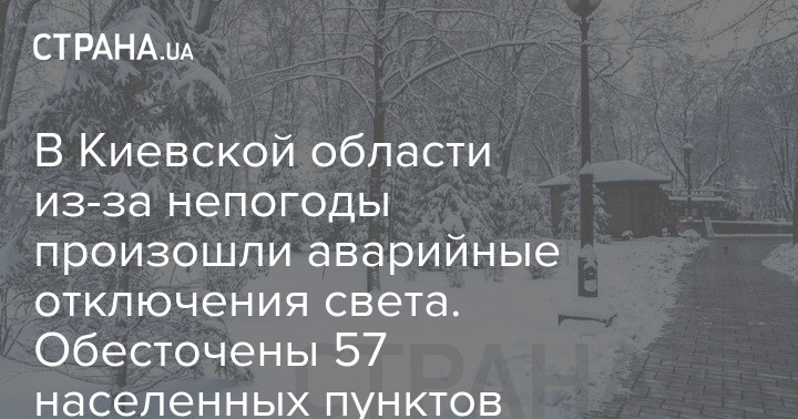 В Киевской области из-за непогоды, в частности, мокрого снега, дождя и налипания снега, произошли аварийные отключения электроэнергии.