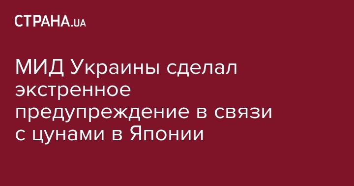 "Объявлено предупреждение о цунами в префектурах Фукусима, Ивате, Чиба, максимальная высота которого в отдельных прибрежных регионах сейчас достигает от 30 до 90 сантиметров. Уважаемые соотечественники, Посольство Украины в Японии рекомендует, в случае пребывания в зоне поражения, придерживаться всех рекомендаций и советов местной власти и уйти из прибрежных районов, пока предупреждение о цунами не будет снято", - говорится в сообщении.