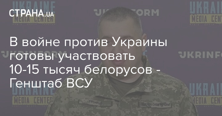 10-15 тысяч белорусов готовы участвовать в войне против Украины. Об этом заявил замначальника Главного оперативного управления Генштаба ВСУ Алексей Громов на брифинге.