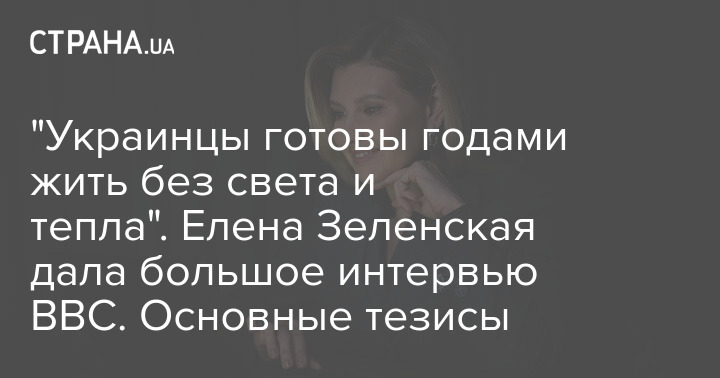 "Украинцы готовы годами жить без света и тепла". Елена Зеленская дала большое интервью ВВС. Основные тезисы