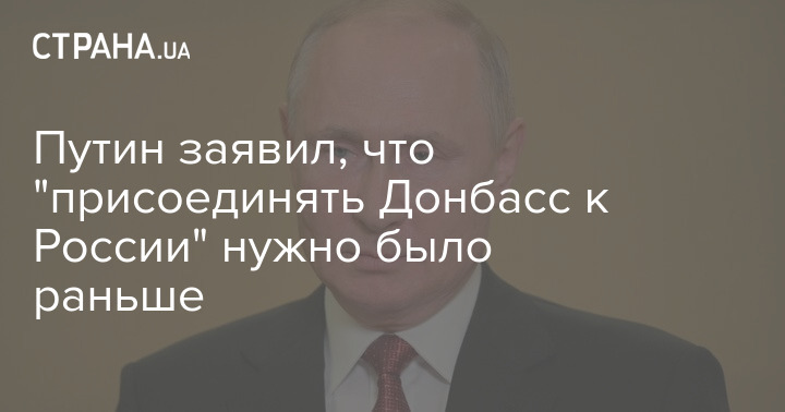 Президент РФ Владимир Путин заявил, что "присоединять Донбасс к России" нужно было раньше.
