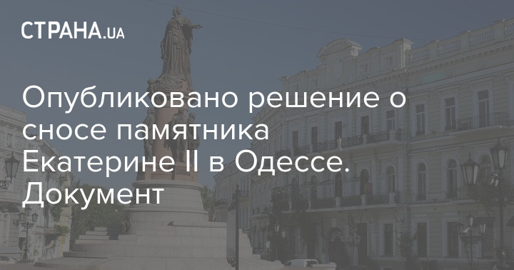 "Демонтировать и перенести памятник "Основателям Одессы" в специальную тематическую зону, обустроенную в Савицком парке в г. Одессе. До обустройства в установленном законодательством порядке специальной тематической зоны в Савицком парке демонтировать и перенести скульптурное изображение императрицы Екатерины II, являющейся составной частью памятника, к месту хранения на складскую территорию коммунального предприятия "Специализированное предприятие бытового обслуживания", - сказано в документе. К слову, это предприятие занимается одесскими кладбищами.