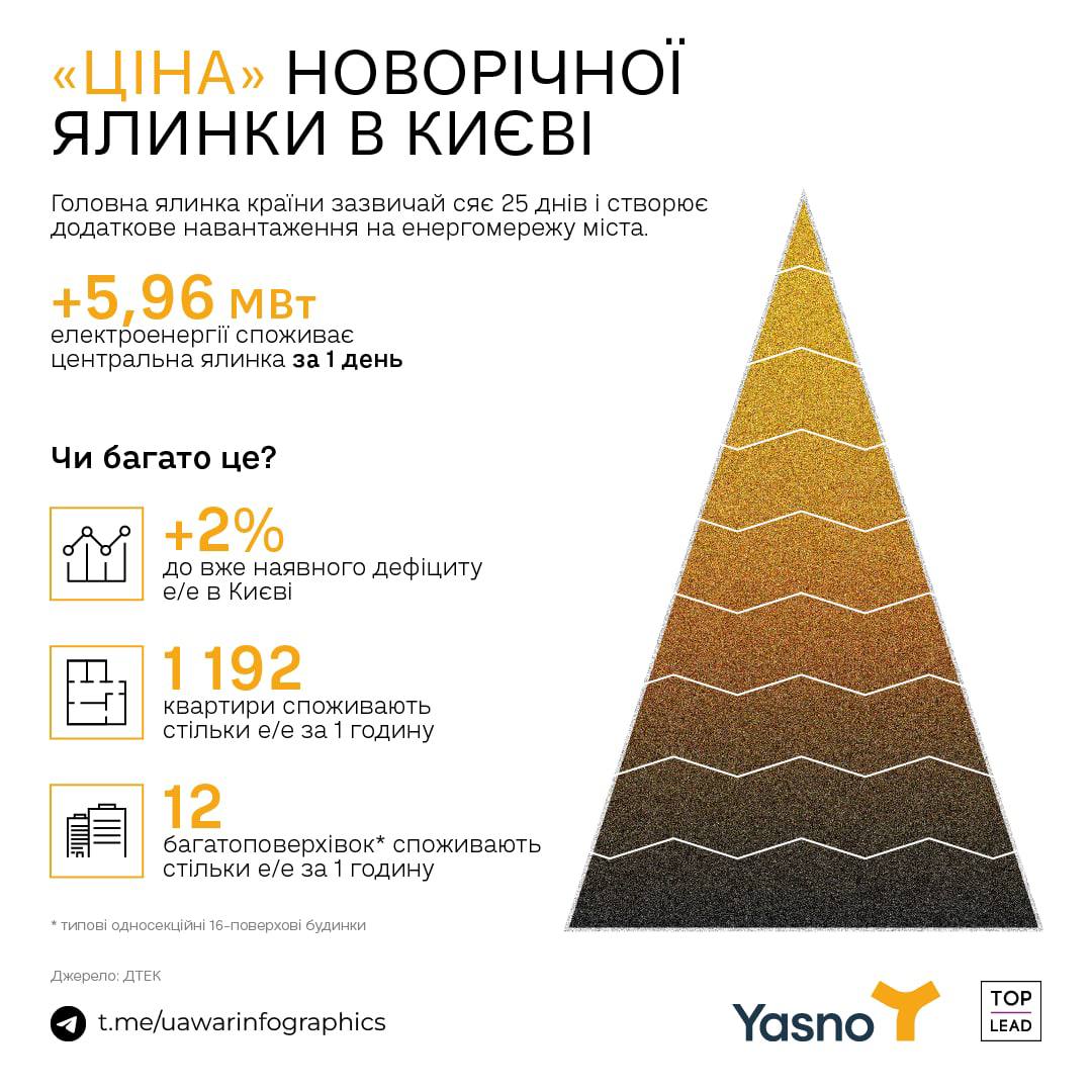 Также сообщают, что день с гирляндами для елки это 1 час света для 1192 киевских квартир, что эквивалентно 12 многоэтажкам.