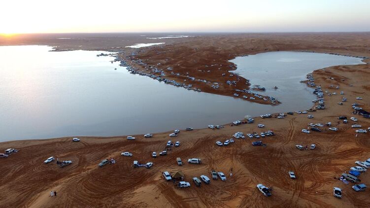 В пустынной Саудовской Аравии 18 и 24 ноября прошли аномально сильные ливни. В сети появились видео их последствий: пустыня превратилась в море.