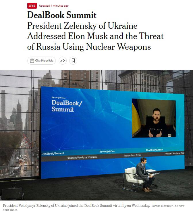 "Если вы хотите понять, что Россия сделала здесь, приезжайте в Украину, и вы увидите это собственными глазами. После этого вы скажете нам, как закончить эту войну, кто ее начал и когда мы сможем ее закончить", – сказал президент Украины во время саммита The New York Times DealBook Summit.
