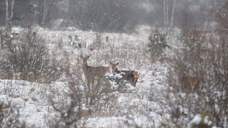Чернобыльский радиационно-экологический биосферный заповедник опубликовал фото оленей в заснеженной зоне отчуждения ЧАЭС.