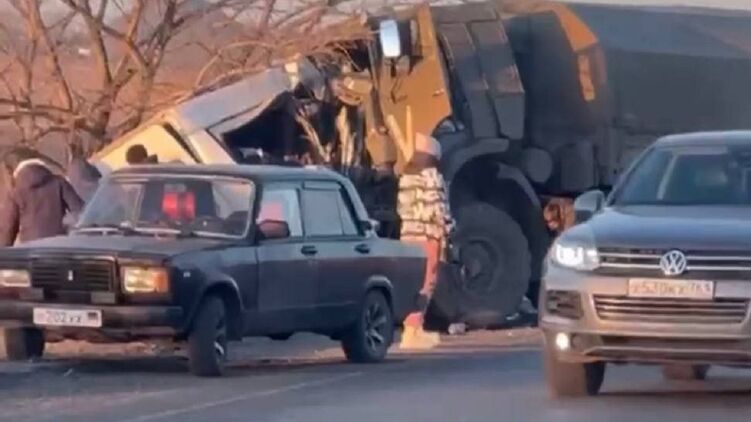 Общее число пассажиров автобуса и грузовика (грузовик перевозил военных в кузове) не называют. Причины аварии устанавливают.