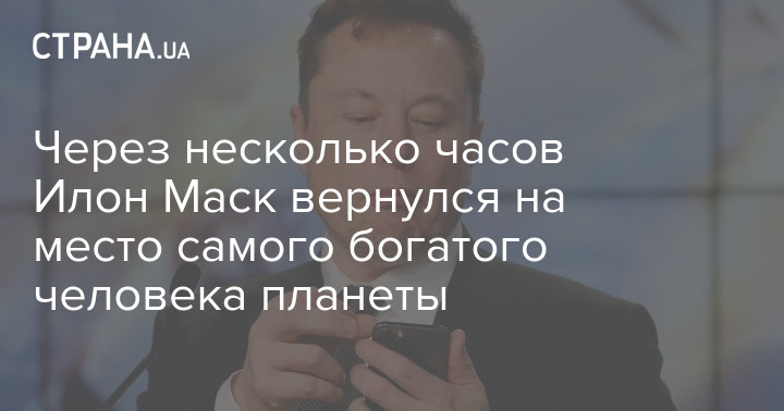 Через несколько часов Илон Маск вернулся на место самого богатого человека планеты
